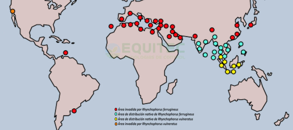 Además, hay un punto que no es menor y que muchas veces se pasa por alto. En nuestras ciudades y paisajes productivos predominan palmeras canarias (Phoenix canariensis), una especie que prácticamente no existe en el sudeste asiático. Desde el punto de vista alimenticio, este hospedante le ofrece al picudo rojo una disponibilidad de tejido muy favorable, que incluso podría considerarse más atractiva que la del cocotero u otras palmeras nativas de Asia. Ese cambio de hospedante también ayuda a explicar por qué, fuera de su área de origen, el insecto encuentra condiciones tan propicias para expandirse.