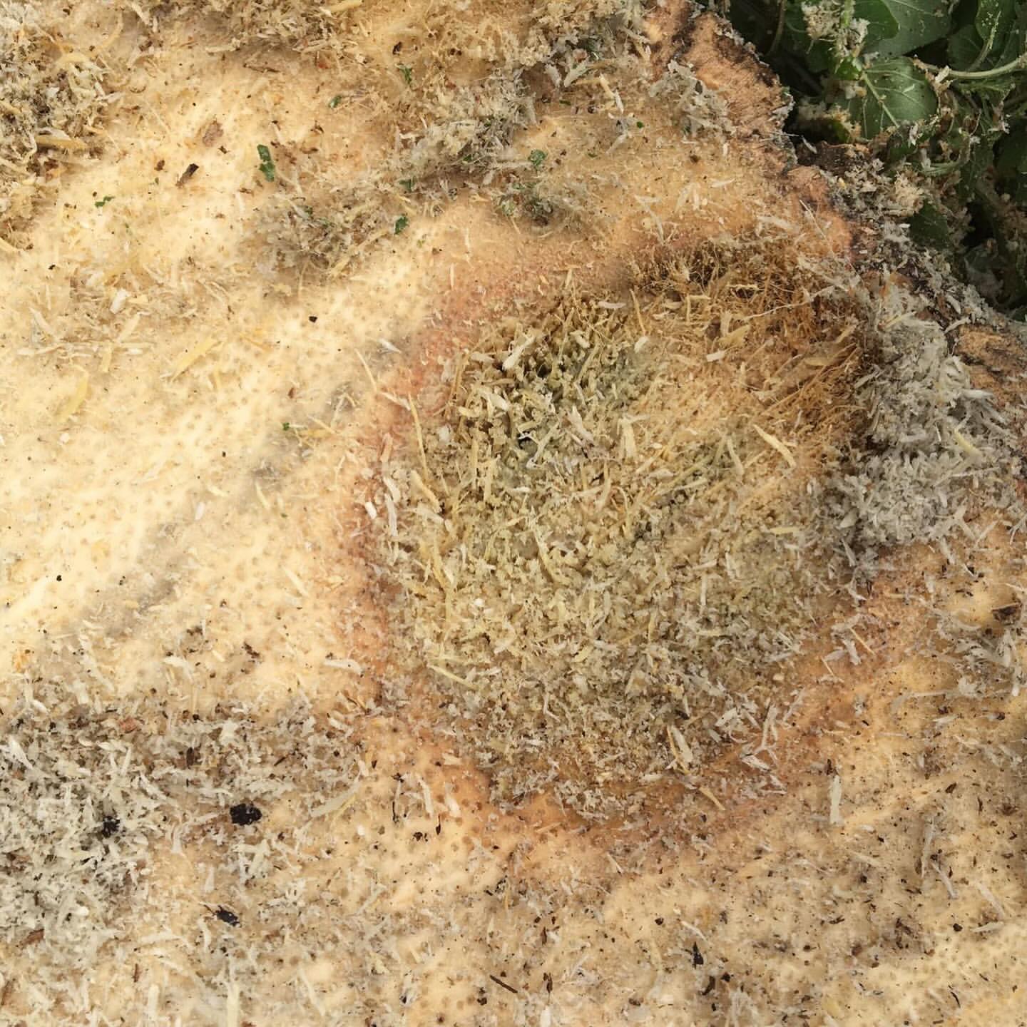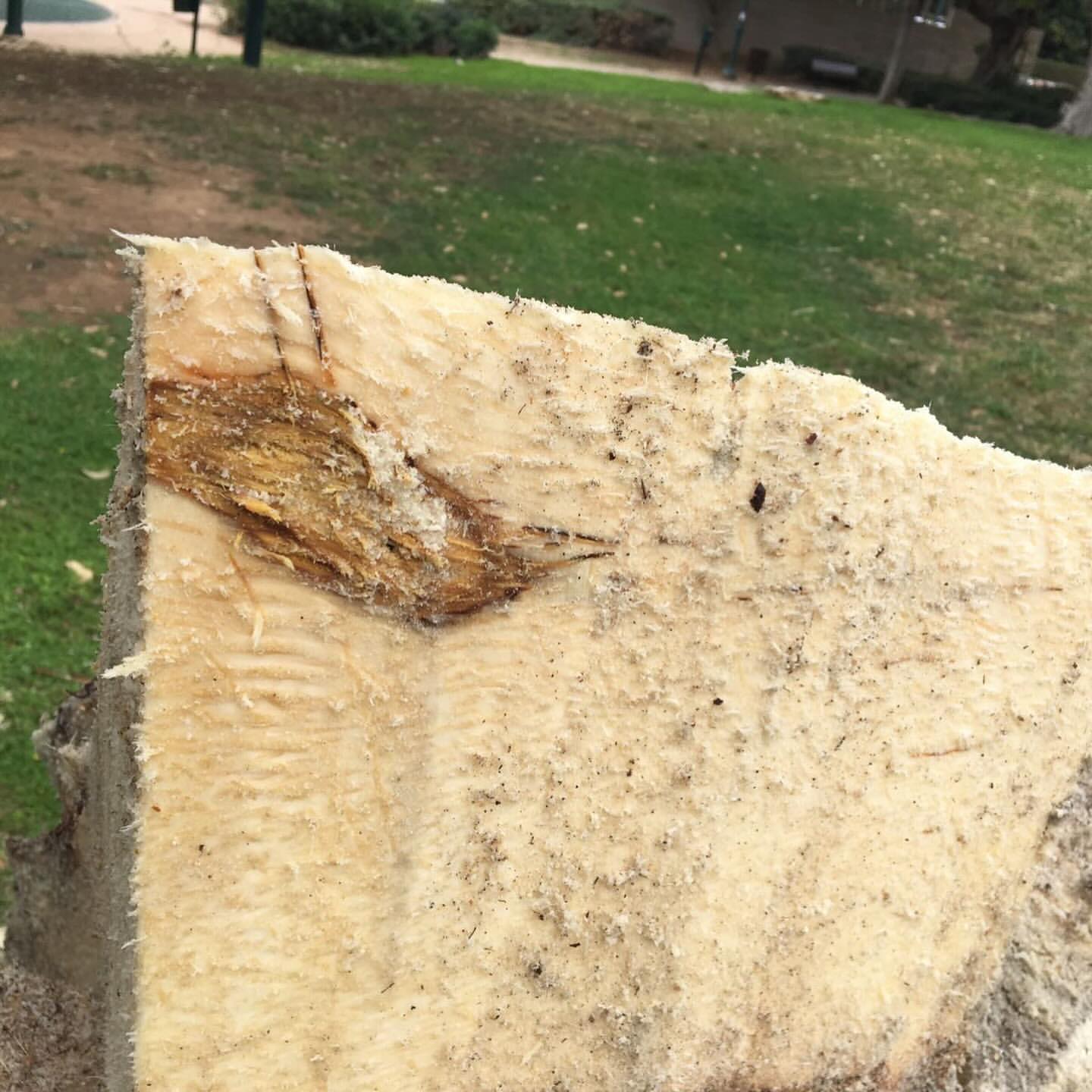 Tercero, la herida permanece abierta de por vida. Lo que con el tiempo se observa como cavidad o hundimiento en el estípite no es necrosis activa de defensa — como sí ocurriría en un árbol dicotiledóneo mediante el modelo CODIT. Es degradación pasiva de tejido permanentemente inerte: el tejido dañado se seca, colapsa y es degradado por microorganismos porque ningún proceso regenerativo lo reemplaza.